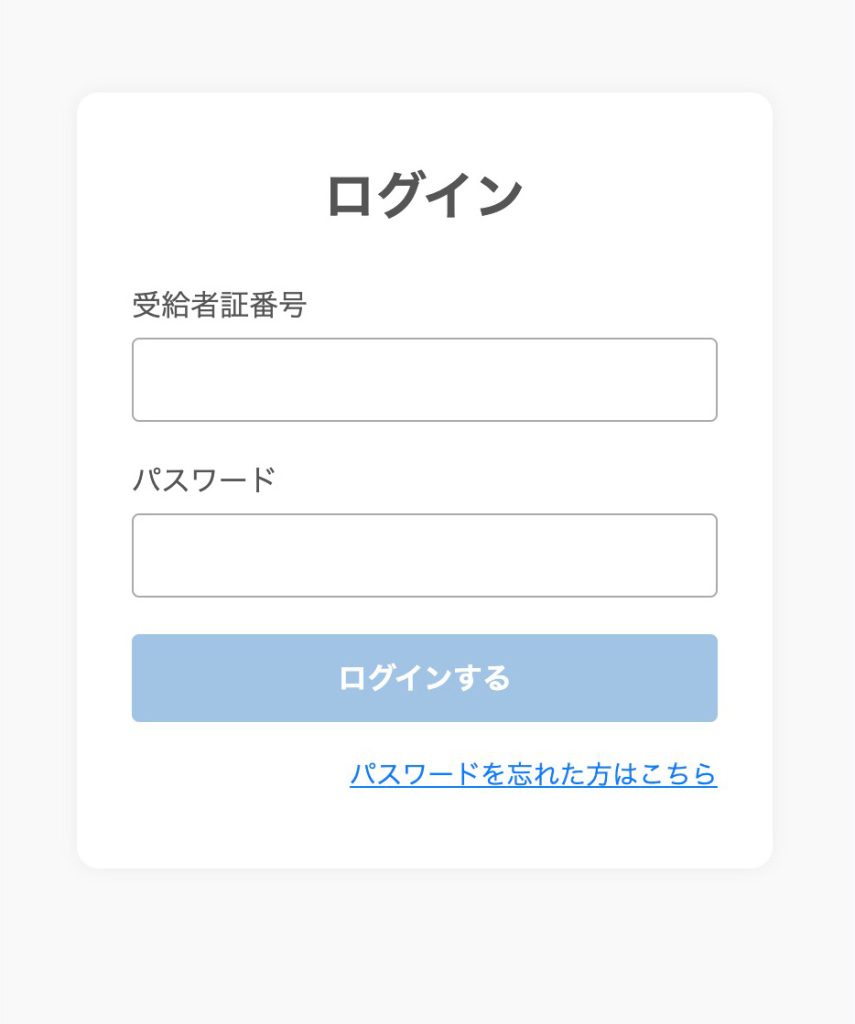①ログイン画面より「受給者証番号」と「独自に設定したパスワード」を入力してログインします。